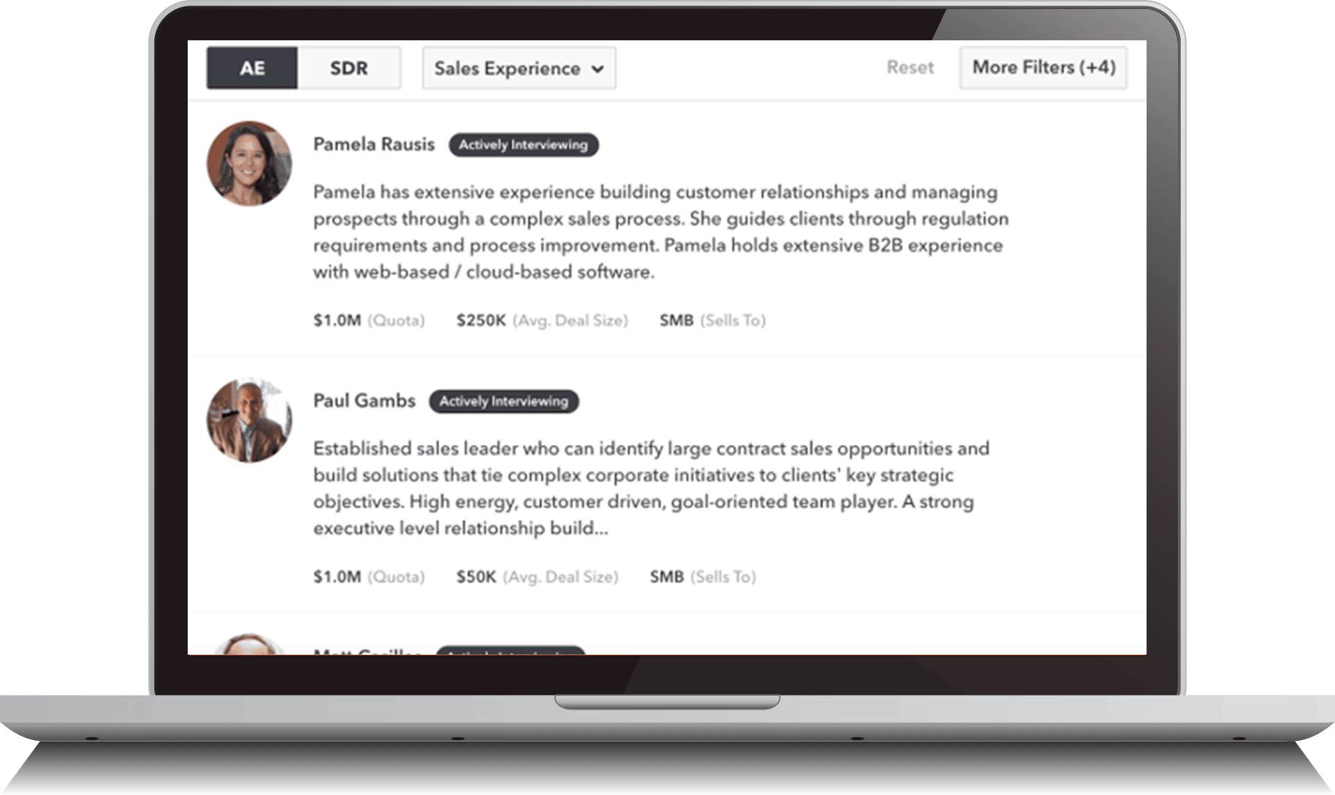 - Get matched with relevant sales candidates